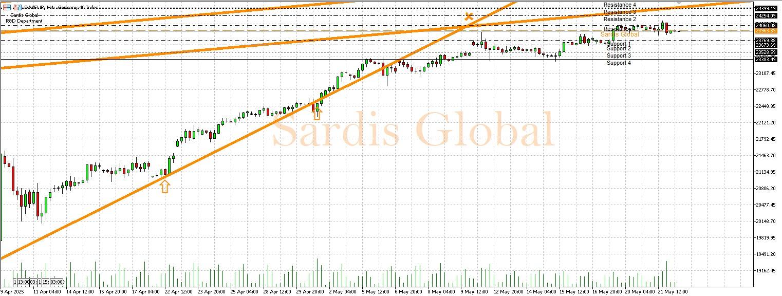 While the pivot level of 23963.89 is being monitored for the Germany DAX index, the index's performance today and tomorrow will largely depend on the economic data coming from the U.S. and the impact of these data on global risk appetite. Generally weaker-than-expected U.S. unemployment claims, PMI, and existing home sales data could increase global growth concerns, putting pressure on the DAX and pushing the index towards the support level of 23769.88 (S1). On the other hand, this situation could create expectations that the Fed may adopt a more dovish policy, providing temporary relief for riskier assets. Conversely, data confirming the strength of the U.S. economy could initially boost global growth optimism, pushing the DAX towards resistance levels of 24060.08 (R1) and 24254.09 (R2); how today's U.S. data is interpreted by global markets will be decisive in pricing after the data is released.