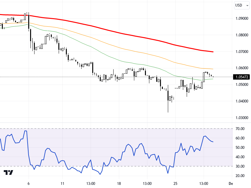 The EUR/USD pair is moving with low trading volume due to the Thanksgiving holiday in the United States. U.S. economic data, particularly growth and PCE inflation figures, were the focus of the markets. U.S. growth came in at 2.8% as the second reading, aligned with expectations. Inflation data also came in parallel to market expectations, while uncertainty about whether the Fed will opt for a rate cut in its December meeting remains. This situation is putting pressure on the dollar's value and providing partial support to the EUR/USD pair.