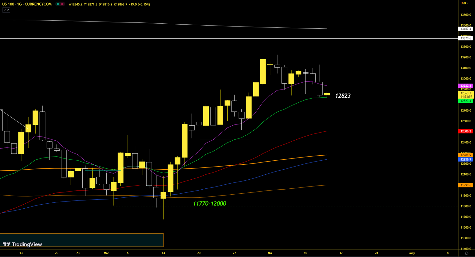 Nasdaq reached a very important level in the daily time frame. Contacts were made yesterday and today to the 20-day exponential average support. The day should not close below this average for the continuation of the trend. 12823 is the current value. Support: 12823 - 12506 Resistance: 12932 - 13380