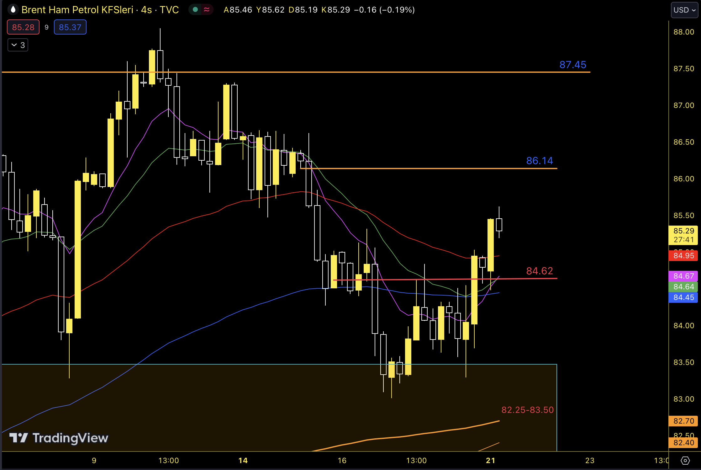 Brent has started to recover from the demand zone after the decline. It is strong above the 84.60 band. It may continue around 86.15 in the short term. Support: 84.60 - 82.50 Resistance: 86.14 - 87.45