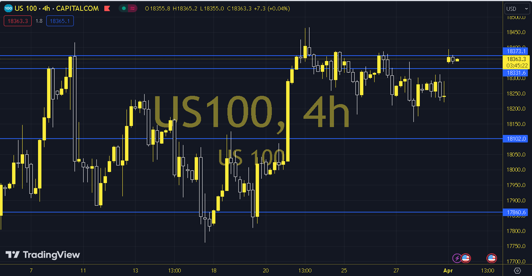 The first trading day of the week and the second quarter of the year started positively with the Nasdaq index futures contract. The index managed to recover from Thursday's horizontal negative course with the purchases made today. ISM manufacturing PMI and manufacturing prices will be monitored today. When we technically examine the short-term pricing of the Nasdaq index futures contract, we are monitoring the 18300 - 18400 region. The pricing of the index outside the region will be monitored, and in possible recoveries, positive expectations may come to the fore again with a persistence above the 18400 level. In increases, the 18500 - 18600 levels can be monitored as resistance. Alternatively, for negative expectations, the index can be expected to fall below the 18300 level. In decreases, the 18200 - 18100 levels can be monitored as support. Support: 18200 - 18110 Resistance: 18400 - 18500