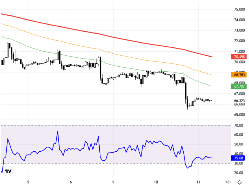 WTI crude oil prices are showing a calm trend during the Asian session due to global demand concerns. The American Petroleum Institute’s report of a drop in stockpiles does not seem to have affected the current situation. The bearish trend in Asian markets and uncertainty before the U.S. inflation data are noteworthy in energy markets. The U.S. Energy Information Administration’s upcoming stock reports could be decisive for price movements. As long as prices remain below the 67.00 – 67.50 resistance zone, downward risks could prevail. In potential downward movements, the 65.50 and 65.00 levels could act as critical support. Technically, when hourly charts are analyzed, WTI crude oil is seen trading near the 66.50-dollar support zone. Upward movements are being monitored at 67.00 and 67.50 levels as resistance. The RSI indicator is at 35, showing that the market presents a negative outlook, approaching the oversold zone. Prices have slightly decreased by 0.10% compared to the previous day, currently trading at 66.32 dollars. Support:65.5 - 65 - 64.5 Resistance:66.5 - 67 - 67.5