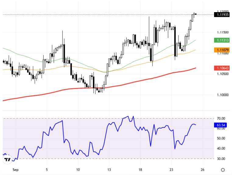 The EUR/USD pair is shaped by significant economic data from the US and Europe, along with central bank policies. In the US, a significant drop in consumer confidence and a slowdown in housing prices are creating economic uncertainties. Statements highlighting that the Fed should be cautious regarding interest rate cuts, considering inflation risks, are drawing attention. On the European front, the decline in Germany's IFO business climate index and contraction in the manufacturing sector are increasing recession concerns. The ECB's future guidance on interest rate cut policies could affect the pair's movement. In the later days of the week, US growth and PCE inflation data, along with speeches by central bank governors, will be closely monitored. From a technical perspective, the EUR/USD pair is trading at the 1.1193 level on the 4-hour chart. In upward movements, the resistance levels of 1.1200 and 1.1275 are observed, while in downward movements, the levels of 1.1113 and 1.1107 can be followed as support. The RSI indicator is at the level of 63.54 and shows a positive outlook. The pair has increased by 0.02% compared to the previous day. Support:1.115 - 1.11 - 1.104 Resistance:1.12 - 1.124 - 1.1275